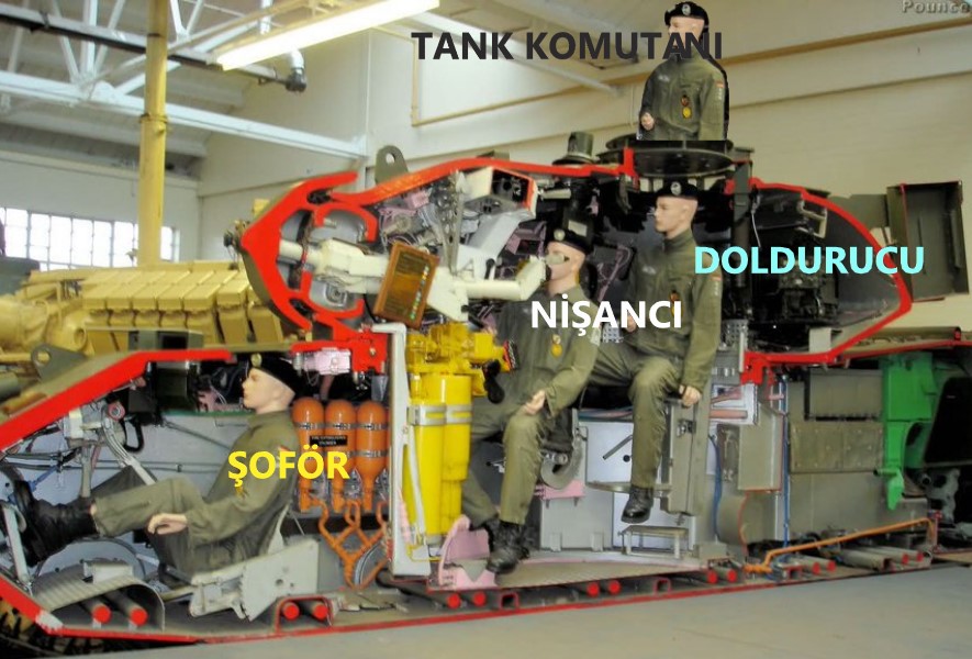 Olayın hangi ortamda ve hangi şartlarda gerçekleştiğini anlamak için sosyal medyadan destek veren bir takipçiyle beraber hazırlanan aşağıdaki görseli inceleyelim. Görsel tankın sevk ve idaresiyle ilgili fikir vereceği gibi tank mürettebatının kimlerden oluştuğunu açıklamaktadır.