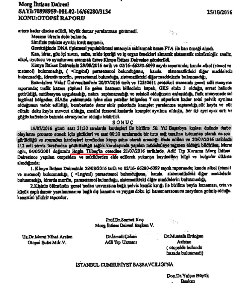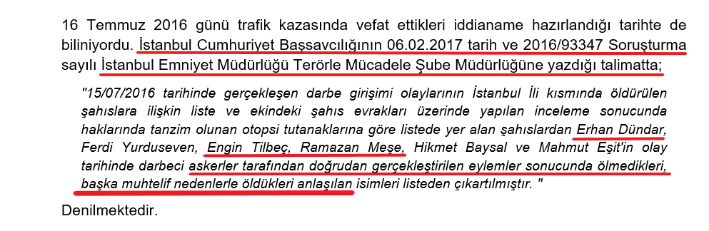 SONUÇ: Başsavcılığın kararı açık bir şekilde maktulün ölümüyle sanıklar arasında bağın kurulamayacağını ortaya koymaktadır. Ancak her 15 Temmuz yıldönümünde 251 ölüme vurgu yapılarak, yargının sorumsuz tuttuğu kişilerin bile linç ediliyor olması anlaşılabilir değildir.