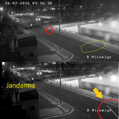 Aşağıda alttaki resimde ise meçhul keskin nişancılar tarafından atılan merminin havada bıraktığı izin net görüntüsü kırmızı yuvarlak içinde yer almaktadır. Merminin geliş açısı değerlendirildiğinde, atışın jandarma dışından JÖH personelinin bulunduğu bölgeden geldiği net olarak anlaşılmaktadır. Bu fotoğraflar maktulün vurulma anından birkaç saniye farkla kaydedilmiş bir kesitlerdir ve atışın yönü hakkında bilgi vermektedir. Asker sol taraftaki binanın arka kısmında konumlanmıştır ve maktulün ölümüyle hiç bir bağ kurulamaz.