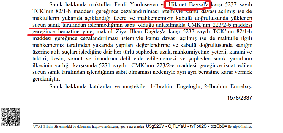 SONUÇ: Mahkemenin beraat kararı açık bir şekilde maktulün ölümüyle sanıklar arasında bağın kurulamayacağını ortaya koymaktadır. Ancak her 15 Temmuz yıldönümünde 251 ölüme vurgu yapılarak, mahkemenin beraat ettirdiği kişilerin bile linç ediliyor olması anlaşılabilir değildir.