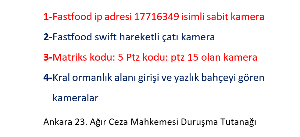 Ayrıca sanığın, infaz anına ilişkin görüntülerin yer aldığı aşağıdaki kameraların görüntülerini ısrarla talep etmesi maktulün katledilmesi konusunda suçsuz olduğu yönünde kendisine güvendiğini ve bu ölümden sorumlu olmadığından emin olduğunu göstermektedir. İnfaz anına ait görüntülerin peşine düşen sanık ancak infaz anı görüntüleriyle ilgilenmeyen savcılık, bilirkişi ve mahkeme nasıl bir tablo ortaya koymaktadır takdir sizlerindir. Aşağıdaki kamera görüntüleri aynı zamanda suç duyurusu mahiyetindedir ve savcılığın bu görüntüler üzerinden gerçek faili araştırması gerekmektedir.