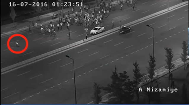Rejimin iddiasının aksine ortaya konulan deliller maktulün asker dışında meçhul bir keskin nişancı tarafından vurulduğunu net olarak ortaya koymaktadır. Aşağıda kamera görüntülerinden alınan bir kesitte saat 01.23 civarı maktul Sedat Kaplan’ı kalabalık grubun önünde tek olarak görüyoruz. Bu fotoğrafta kırmızı yuvarlak ile işaretlenen görüntü aynı zamanda vurulma anının görüntüsü.