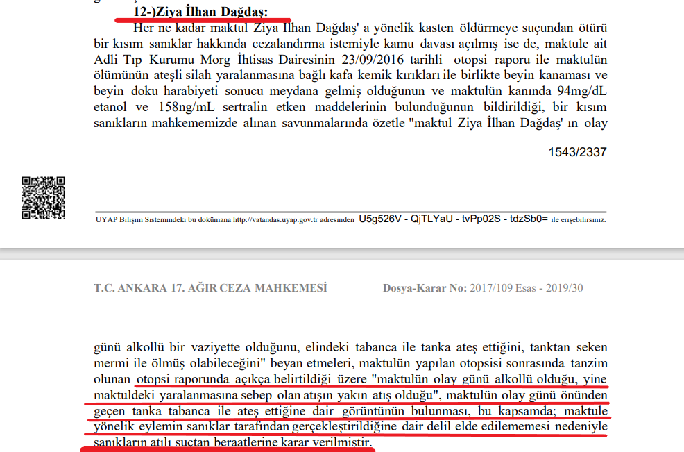 SONUÇ: Mahkemenin beraat kararı açık bir şekilde maktulün ölümüyle sanıklar arasında bağın kurulamayacağını ortaya koymaktadır. Ancak her 15 Temmuz yıldönümünde 251 ölüme vurgu yapılarak, mahkemenin beraat ettirdiği kişilerin bile linç ediliyor olması anlaşılabilir değildir.